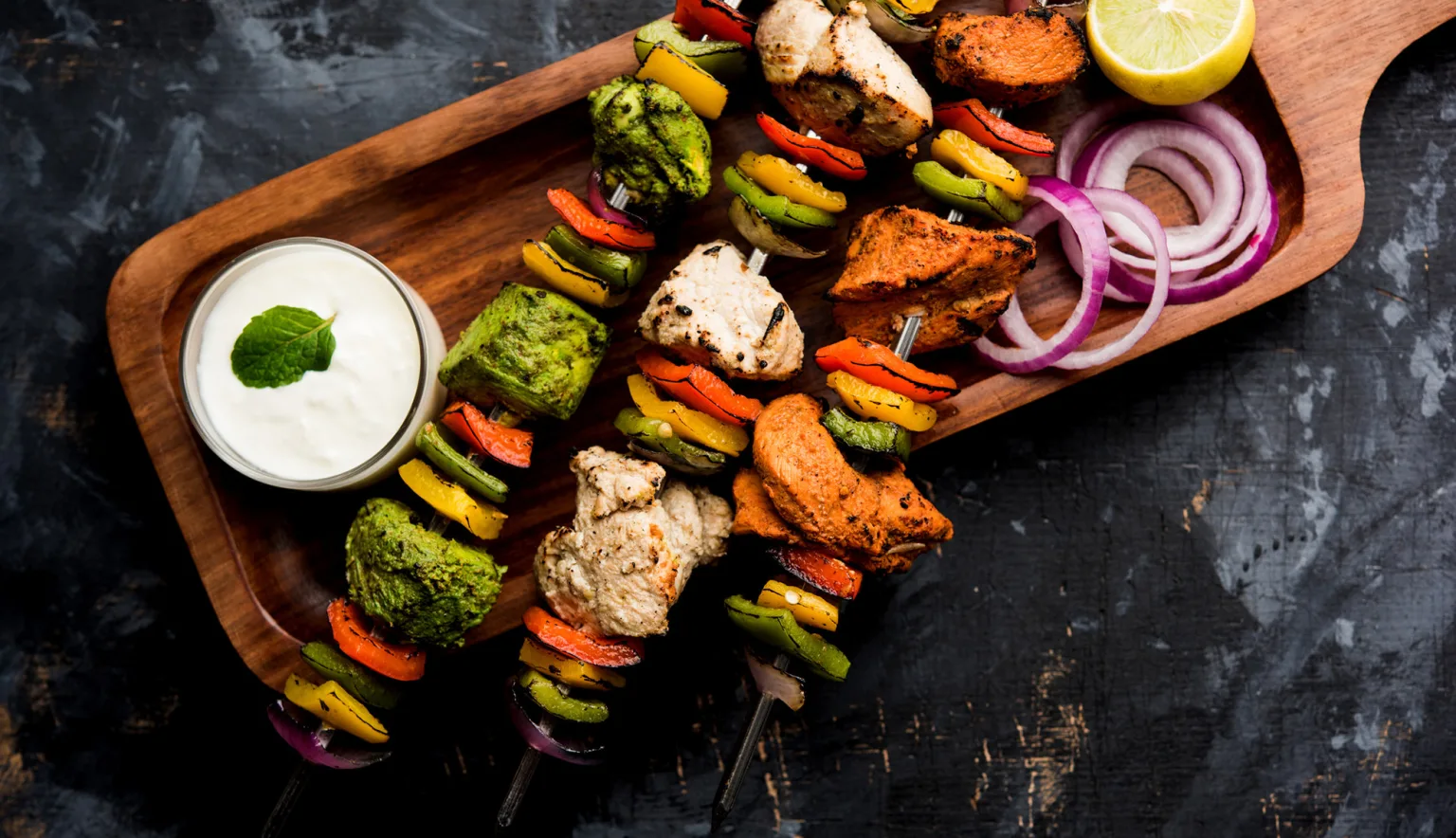 Kebabs are a popular starter in India. Like me, they arrived in the country from somewhere else. First introduced to India by Afghan migrants, they were refined by the Mughal Emperors, who ruled India between the 16th and 18th centuries and favoured softer, more extravagantly spiced meats. They cooked kebabs in tandoors – clay ovens heated by a charcoal fire – a method still used in India today. However, kebabs first originated in Turkey, when soldiers skewered meat on swords and roasted it over an open fire.