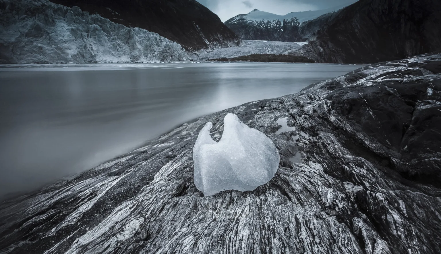 “Whilst guiding a group of photographers at Pia Glacier, Tierra del Fuego, they had rightly been excited about capturing the ‘hero’ rock star shots of dramatic blue ice and crashing waves at the face of the glacier. But looking the other way towards the quiet lagoon as I waited to be picked up by a Zodiac, I saw this simple, serene, almost monochrome composition, and took one last frame before packing the tripod away.”