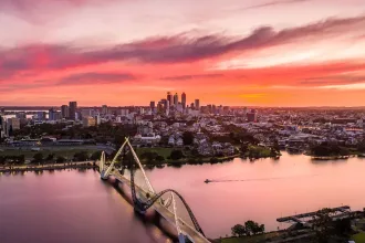 Australia’s sunniest city of Perth can be found between the bright sandy shores of the Indian Ocean and the shimmering banks of the Swan River
