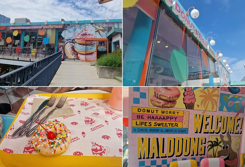 Malddong Donut & Yogurt Dessert Town, whose name translates to ‘horse poop’, has gained considerable attention for its kitsch theme and quirky décor, immersing visitors in a mischievous environment characterised by bright, candy-coloured furnishings.