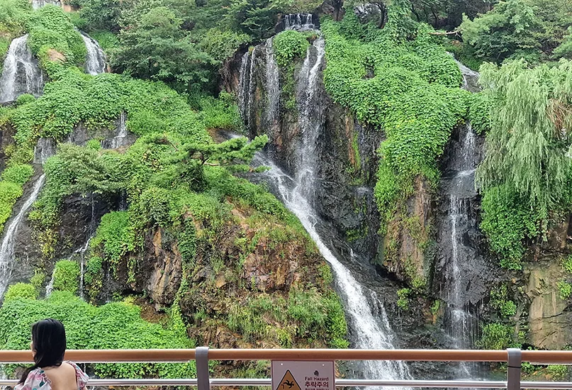 Cafe Pokpo – meaning ‘waterfall’ – is strategically situated to offer breathtaking views of the nearby Hongjecheon Artificial Waterfall, making it a perfect spot for relaxation and reflection.