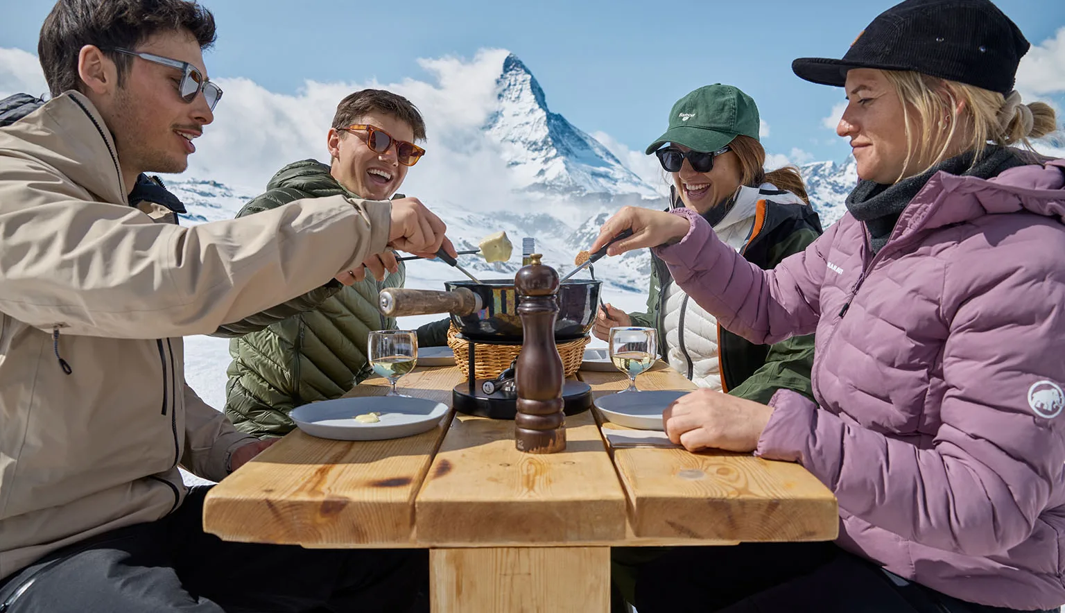 @Paradise offers a delightful dining experience with traditional Swiss fondue against a stunning Alpine backdrop, including views of the Matterhorn. Guests can choose from classic cheese fondues, making it a perfect spot for sharing after outdoor adventures, or spicy Alpen perch hotpot, amongst other options.