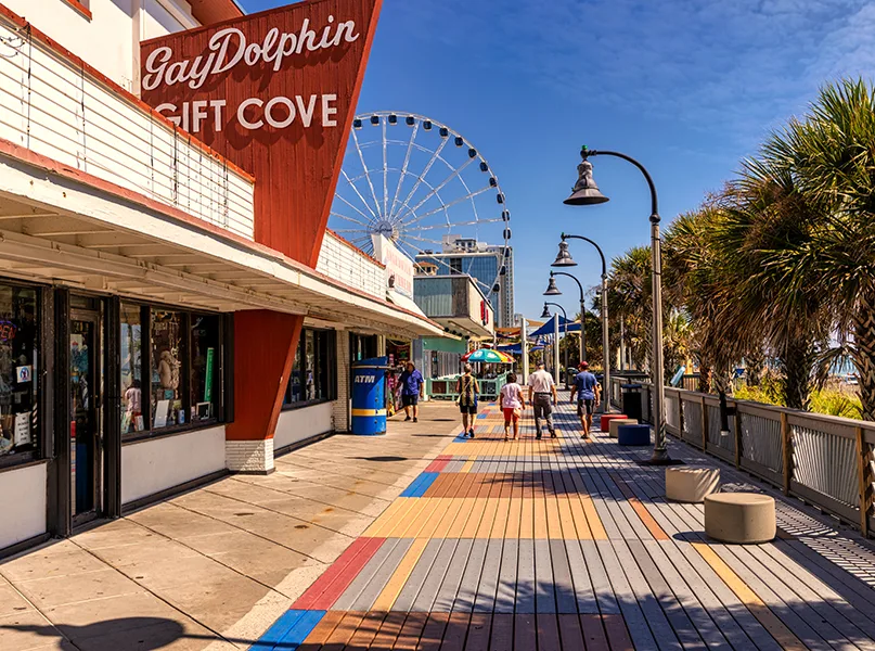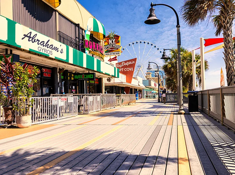 The heart of the city and a prime source of excitement, entertainment, and family fun, the Myrtle Beach Boardwalk and Promenade is a vibrant oceanfront stretch of 1.2 miles that defines the iconic downtown area.